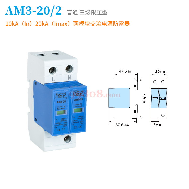 | 512936当前 | 10kA(In)20kA(Imax)两模块交流电 | - | AM3-20/2 | ASP/上海雷迅 | 起售:1 批量:1 | 只 | ¥176.00/只 | 当前项目 | |