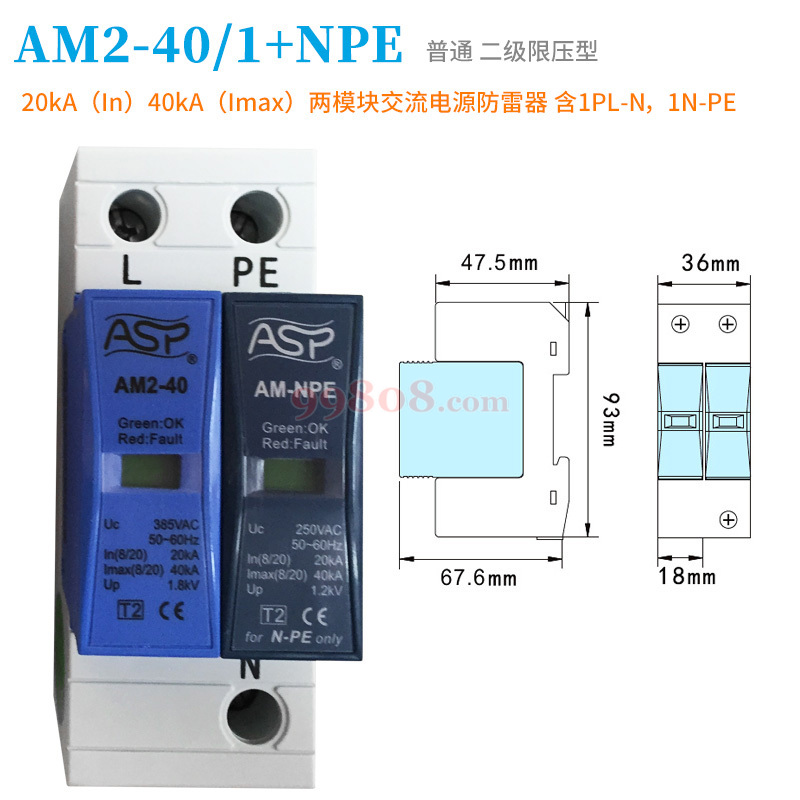 | 512942当前 | 20kA(In)40kA(Imax)两模块交流电含1PL-N,1N-PE | - | AM2-40/1+NPE | ASP/上海雷迅 | 起售:1 批量:1 | 只 | ¥182.00/只 | 当前项目 | |