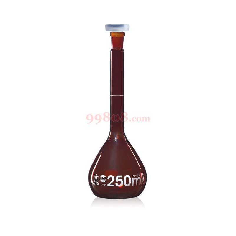 ·中文描述:Volumetric flask, USP, BLAUBRAND?, cl.A, amber, 25ml, NS 10/19, Boro 3.3, PP-st