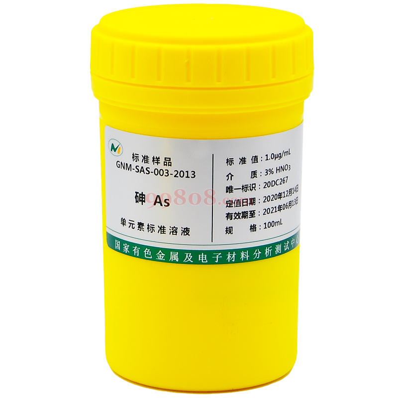 有色金属研究总院 | 标液-As砷 | 1ppm 100mL 3 HNO3 六个月