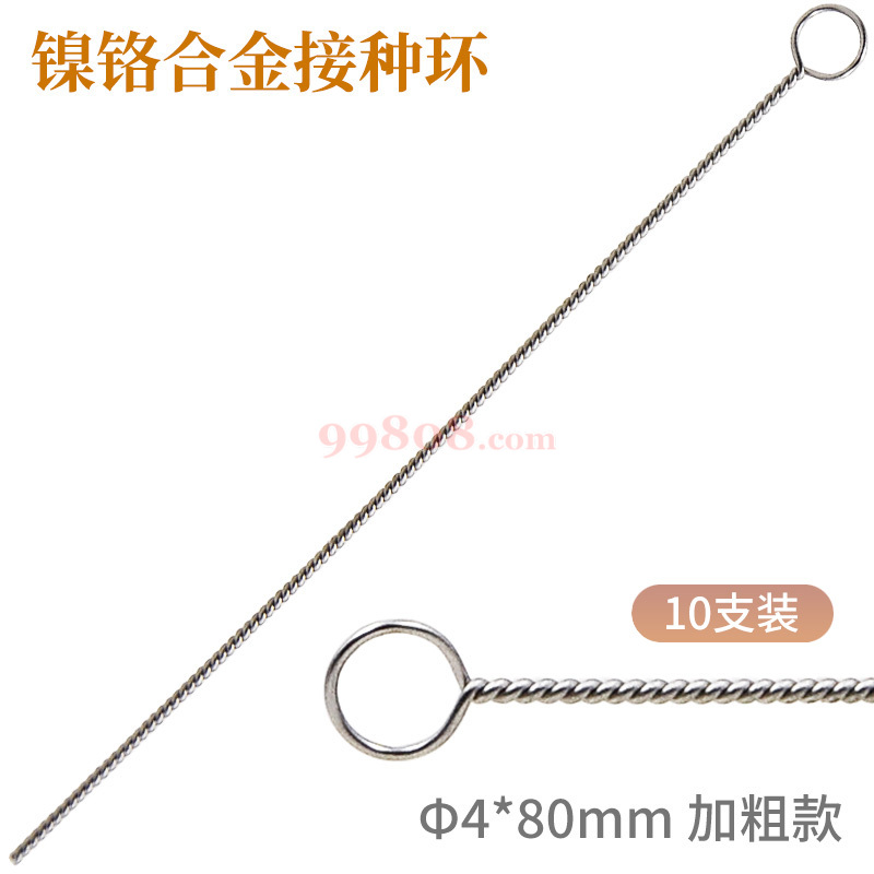 镍铬合金接种环是在德国铂金的基础上,采用替代材料开发的,其特点有: 其一,耐高温的性能不比铂金的低,在高温情况下,镍铬合金接种环的使用弹性(刚性)相反的比铂金接种环强,寿命反而高。使用期长。 其二,与普通的金属接种环比特性不言自明。 其三,与塑料接种环的方便相比,同样,可以成批在高压灭菌锅高温消毒后使用,达到不用每次消毒的目的。