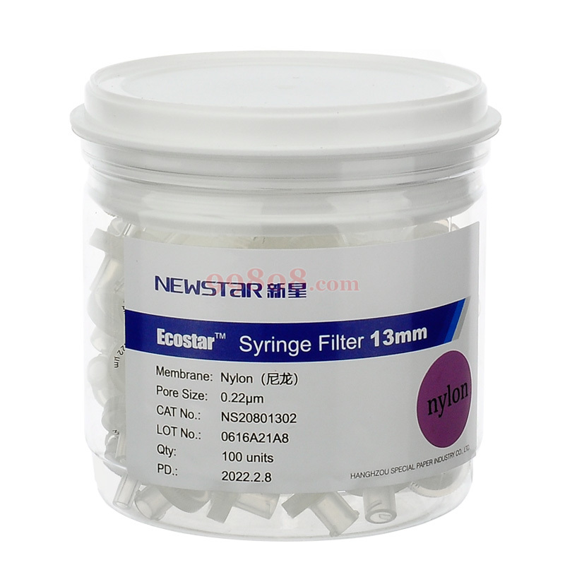 新星/NEWSTAR | EcoStar 一次性针头过滤器(单层膜) | 尼龙膜(Nylon)Ф13mm/0.22μm