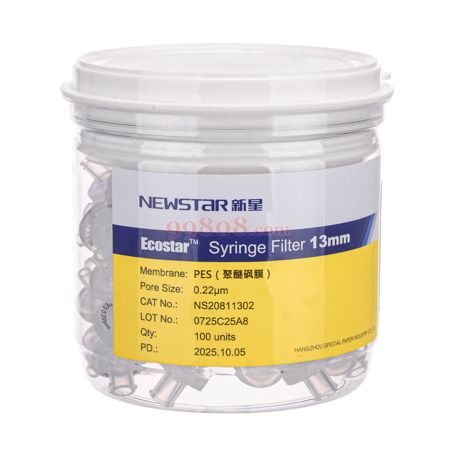 新星/NEWSTAR | EcoStar 一次性针头过滤器(单层膜) | 聚醚砜膜(PES)Ф13mm/0.22μm