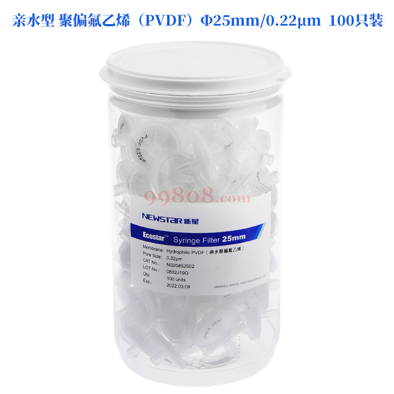 新星/NEWSTAR | EcoStar 一次性针头过滤器(单层膜) | 亲水聚偏氟乙烯(PVDF)Ф25mm/0.22μm