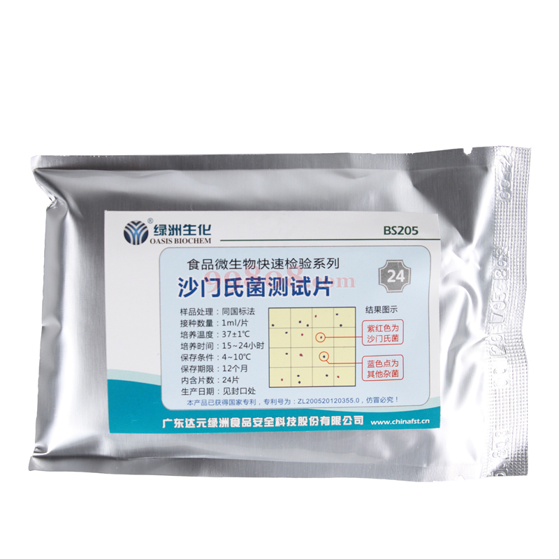 特别提示: 本产品需自备恒温培养箱、精确称量器(如电子天平、移液器等)和其他一次性灭菌或消毒器具、消毒灭菌设备等基本微生物操作条件才方便操作,请跟客服确认是否具备相关条件后再确定是否购买。 产品名称:沙门氏菌测试片 产品规格: 24片/包 产品用途: 沙门氏菌检测