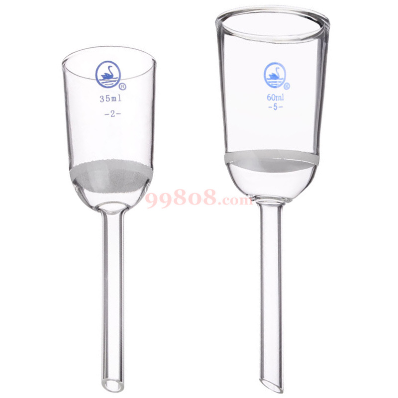砂芯漏斗:漏斗的砂芯滤板由烧结玻璃料制成,可以过滤酸液和用酸类处理,也叫耐酸漏斗。