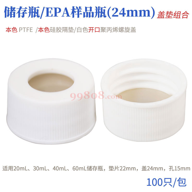 ReLAB | 储存瓶/EPA样品瓶(24mm) | 【盖垫组合】本色特氟龙/本色硅胶隔垫/白色开口聚丙烯螺旋盖