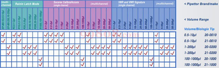 Biologix 吸头与移液器的适配性: