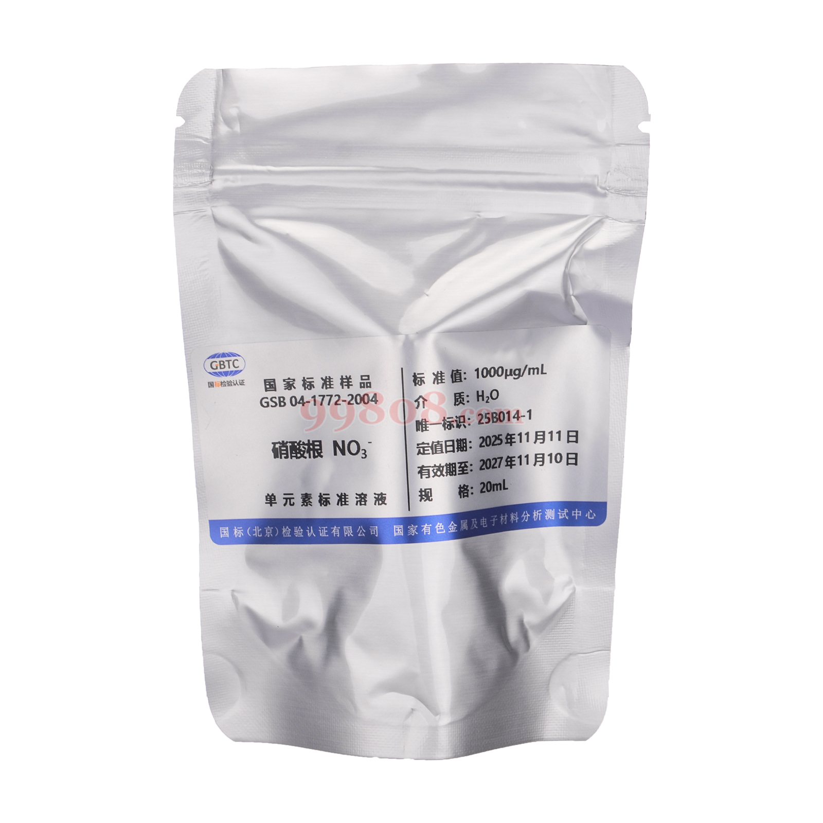 有色金属研究总院 | 标液-硝酸根 NO3-标液 | 1000ppm H2O(水), 20mL