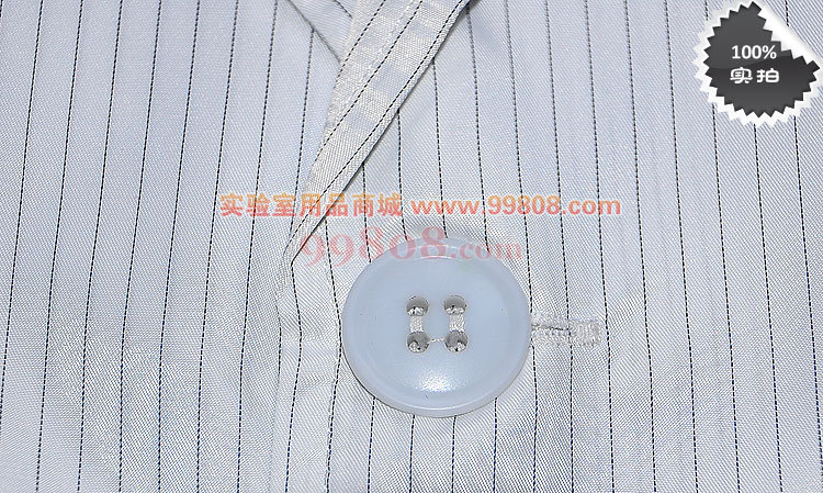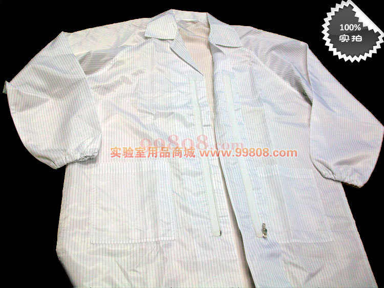 罩衫式外套,聚酯100%,颜色:白/蓝,袖子橡胶,分为纽扣款和拉链款 领子规格:领子为西装领。拉链开口部位通过内襟翼进行防护。 袖口规格:与手腕紧贴的袖口橡胶、防止尘埃流出。 下摆规格:通过下摆的狭缝确保活动的便利性。 需定制,订货周期为7个工作日。订购请告知需要的颜色