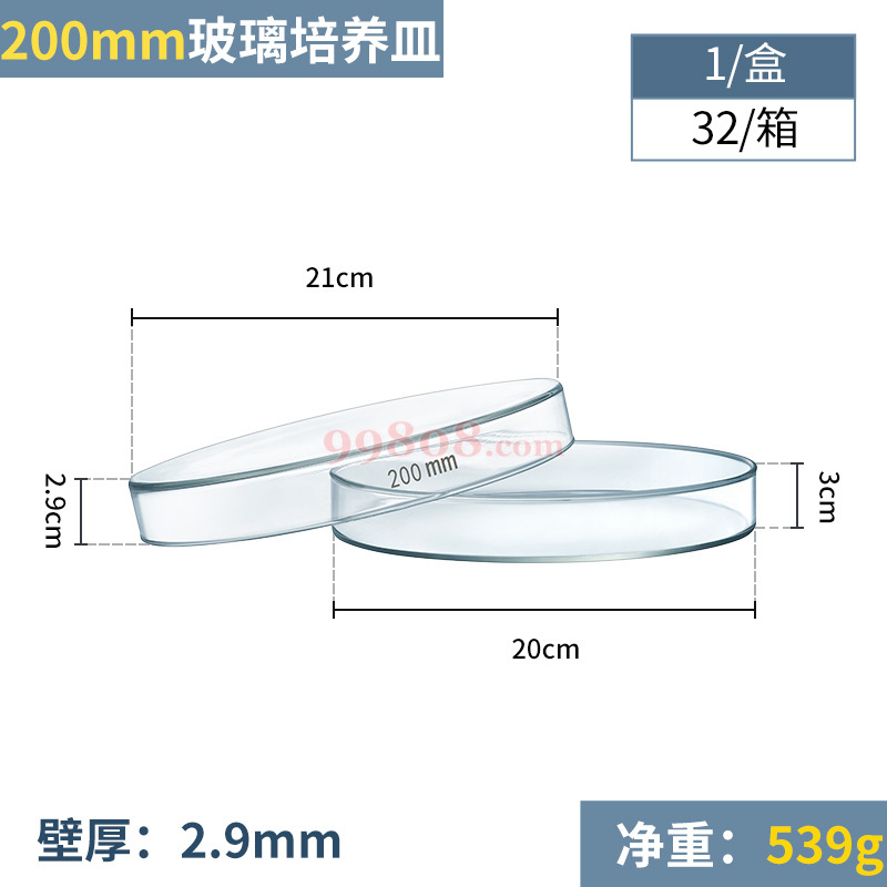 【别名】双碟、平板皿、双重皿、培养碟 【英文名】Petri culture dishes 【材质】高品质硼硅玻璃制品,有耐药性,溶出量少,可放心使用。 【规格】培养皿规格尺寸的计算,在国际上有两种不同的计算方法:一种方法是按皿盖计算,理由是在培养时使用恒温箱内进行培养,它可以计算恒温箱的体积可存放多少个培养皿;另一种计算方法是按照培养皿皿底计算,理由是在培养时可按照培养皿的皿底体积计算使用多少培养基。