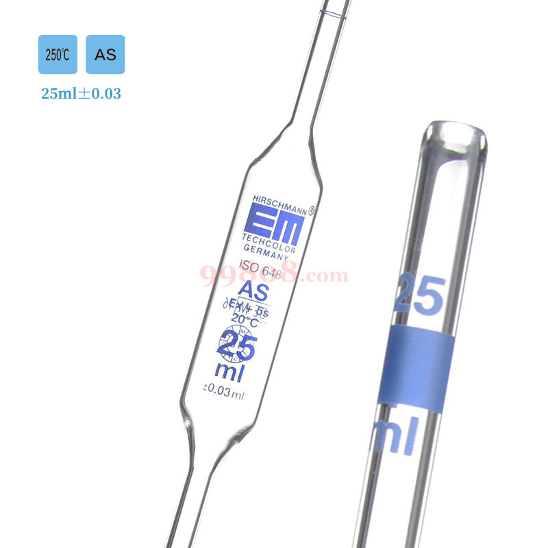 HIRSCHMANN/赫施曼 | 单标记移液管 蓝标 AS级 量出式 | 25mL