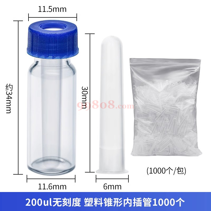 内插管参数:250UL圆锥形带塑料支脚内插管6*29mm