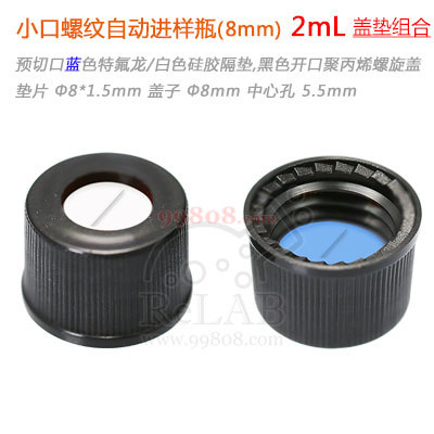 ReLAB | 2ml小口螺纹自动进样瓶(8mm) | 盖垫组合:预切口蓝色特氟龙/白色硅胶隔垫,黑色开口聚丙烯螺旋盖