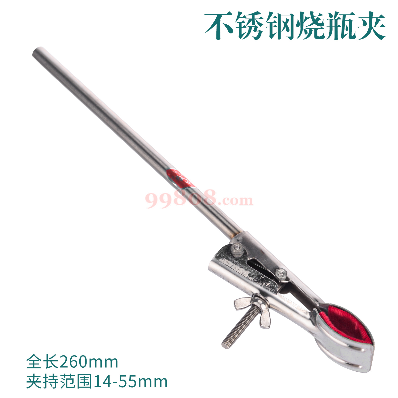 烧瓶夹适用于科研,教学实验,医院,工矿企业化验室进行蒸馏,回流蒸馏装置时用于将冷凝管,烧瓶等仪器固定于铁台架的支柱上,也可以用于在三角架上做加热时将烧瓶固定于铁台架的支柱上用.
