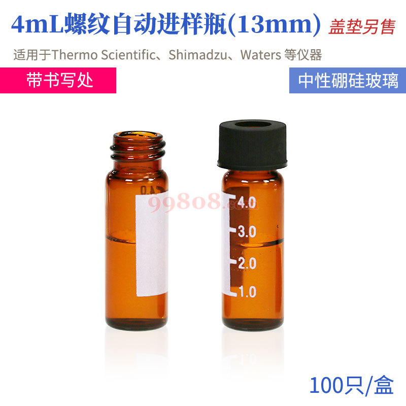 13-425标准螺纹,保证了其具有相当的密封性,常用于气相色诺和液相色谱。样品瓶具有良好的化学性能,能够重复扎针使用。