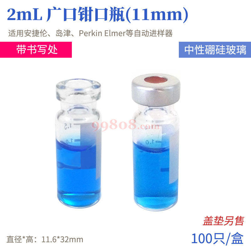 适用于下列品牌仪器 ★兼容所有2mL样品瓶自动进样器 Agilent、Waters、Thermo Scientific、Beckman、CTC、Gilson、Knauer、Shimadzu、Spark、Varian、VWR (Merck)/Hitachi、PerkinElmer等。 2mL、11.6x32mm.11X1mm特氟龙/ 硅胶隔垫11mm 钳口样品瓶和微量内插管、气相/液相小瓶 *宽颈口设计,便于灌装,适用于6mm直径的内插管 *带书写的样品瓶提供带刻度的书写标签,方便识别样...