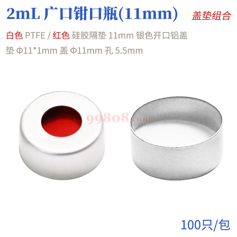 ReLAB | 2ml广口钳口瓶(11mm) | 盖垫组合:白色特氟龙/红色硅胶隔垫 11mm银色开口铝盖