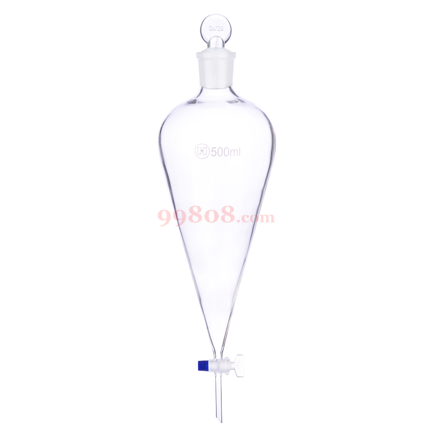 用途:分层,加液用。梨形对液面分离相对比球形易控制。做萃取实验时,溶液易产生气体,晃动两三下以后,请注意及时放气,以免发生炸裂。