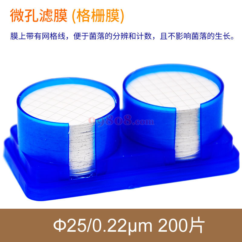 格栅膜又称混合纤维素膜,可以阻挡微粒和微生物的过,达到净化液体中微生物、微粒的效果。Γ适合微生物截留和生长,微生物复活率>90%;膜上带有网格线,便于菌落的分辨和计数,且不影响菌落的生长。 格栅间距3.3mm