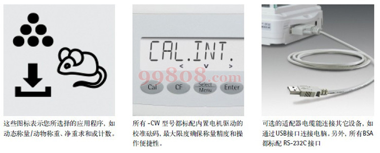 【功能齐全】将赛多利斯BSA的所有功能列出来,就能发现只有真正的赛多利斯实验室天平才能提供给您所有这些优势,值得您为此付出。所有-CW型号都标配内置电机驱动的校准砝码。只需一键就能Γ大限度确保精度。如果要得到符合ISO/GLP标准的原始或校准/调整数据,只需连接YDP03-0CE数据打印机,然后按下打印键即可。其它标准内置应用程序:百分比称量、净重求和、动物称量/动态称重、单位转换、计算(乘、除)。