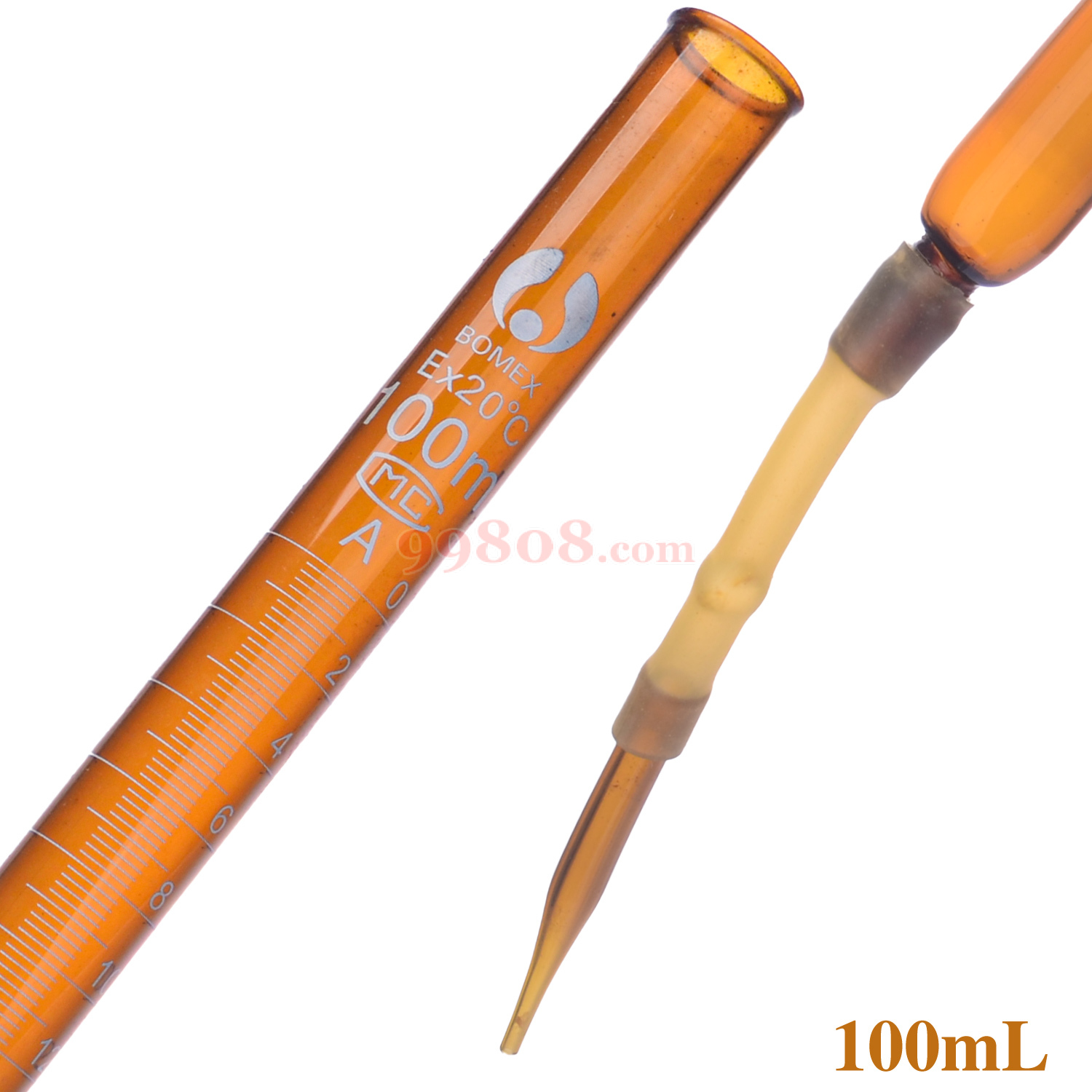 又名黄碱式滴定管。适用于需要避光的碱性溶液,作中和滴定的计量器具。