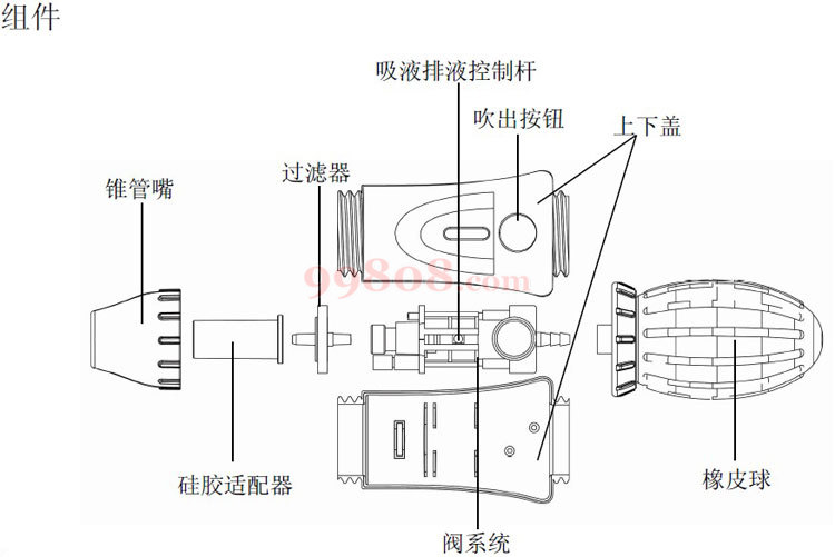 安上移液管,吸液,使液体Γ少达到移液管容量的一半。将移液管放在一个合适的溶液器皿上面,如果移液管末端出现有液滴,则说明有漏液现象,则需拆开移液器(参照步骤8),然后正确组装。