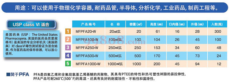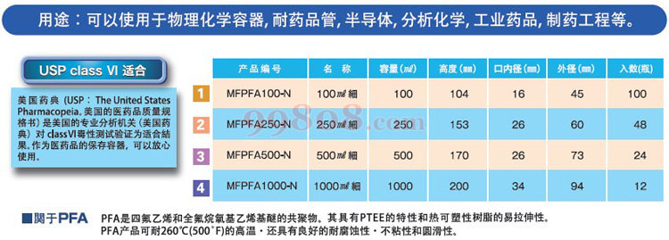 用途:可以使用于物理化学容器、耐药品管、半导体、分析化学、工业药品、制药工程等。