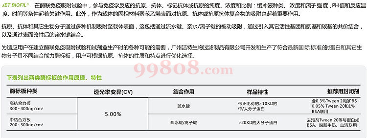 | 7699 | 8孔 中结合力酶标条 | 60条/包;2400条/箱 | FEP200008 | JETBIOFIL/洁特 | 起售:1 批量:1 | 箱 | ¥1008.00/箱 | ||