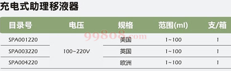 | 8093 | 移液器配件 220V 充电器 | 1个/包 | SPA020220 | JETBIOFIL/洁特 | 起售:1 批量:1 | 包 | ¥44.00/包 | ||