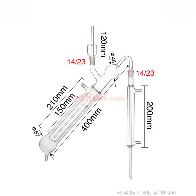 又名马氏半微量定氮蒸馏器。本器适用于常量与微量之间的样品量,用水蒸气蒸馏法,对有机物作氮的含量测定。零件名称:磨口蒸馏管、磨口直形冷凝管、磨砂斗塞棒。 零件名称:磨口蒸馏管(磨口编号:14),磨口直形冷凝管(磨口编号:14),磨砂斗塞棒(磨口编号:12)