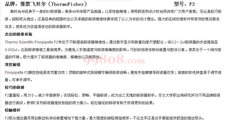 Thermo Fisher/赛默飞世尔 | F2 多道移液器(整支消毒、原装进口) | F2/8道,1-10ul微型管咀