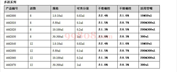 | 8820 | F2/12道,30-300ul | - | 4662070 | Thermo Fisher/赛默飞世尔 | 起售:1 批量:1 | 支 | ¥12925.20/支 | ||