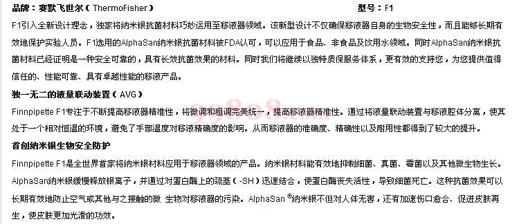 Thermo Fisher/赛默飞世尔 | F1移液器系列(银离子涂层、原装进口) | F1单道可调,0.2-2ul微型管咀