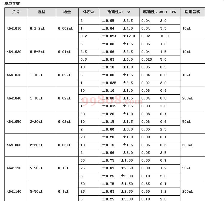 规格:F1单道可调,0.2-2ul微型管咀