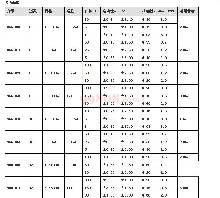 | 8850 | F1/12道可调,5-50ul | - | 4661050 | Thermo Fisher/赛默飞世尔 | 起售:1 批量:1 | 支 | ¥15428.40/支 | ||