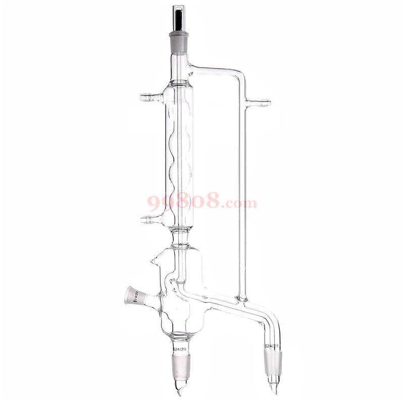 本分馏头用电磁活塞的上下移动来控制回流比,下部具有保温套,使蒸馏效率提高,全部为标准磨口。(吸动装置用户自备)。主塞编号*边塞编号*边口编号