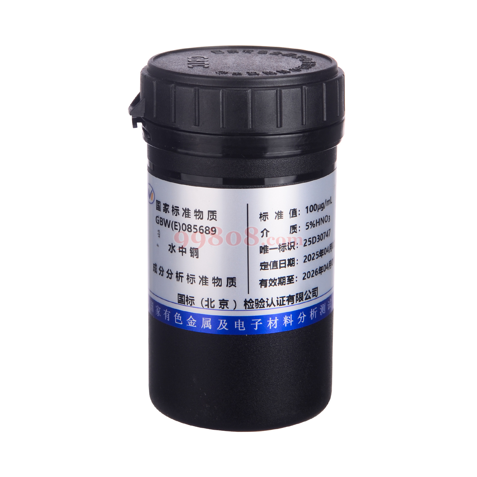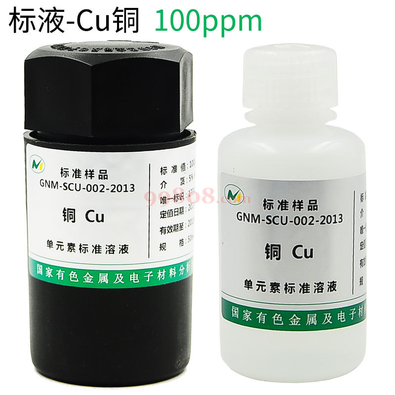 北京有色金属研究总院研制,100mL起浓度可定制。本液体标准广泛用于ICP-AES法、ICP-MS法、ICP-AFS法、原子吸收光谱法(AAS)、离子选择性电极光(ISE)、离子色谱法(IC)、分光光度法(COL)分析测试使用。可以在科学研究、实时检测、量值检验、质量控制、实验室认可、产品质量认证、数据对比、制定和评价检测方法、校准仪器、考核操作人员等相关工作中使用。