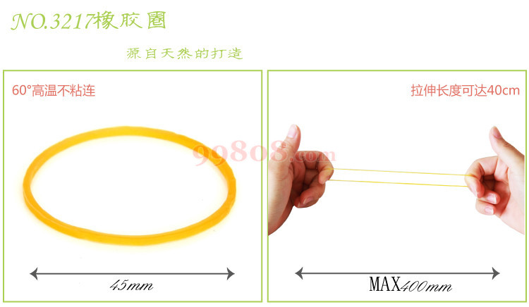 NO3217橡胶圈,强度大、韧度好,反复拉伸不易断,平均拉伸长度可达40cm。